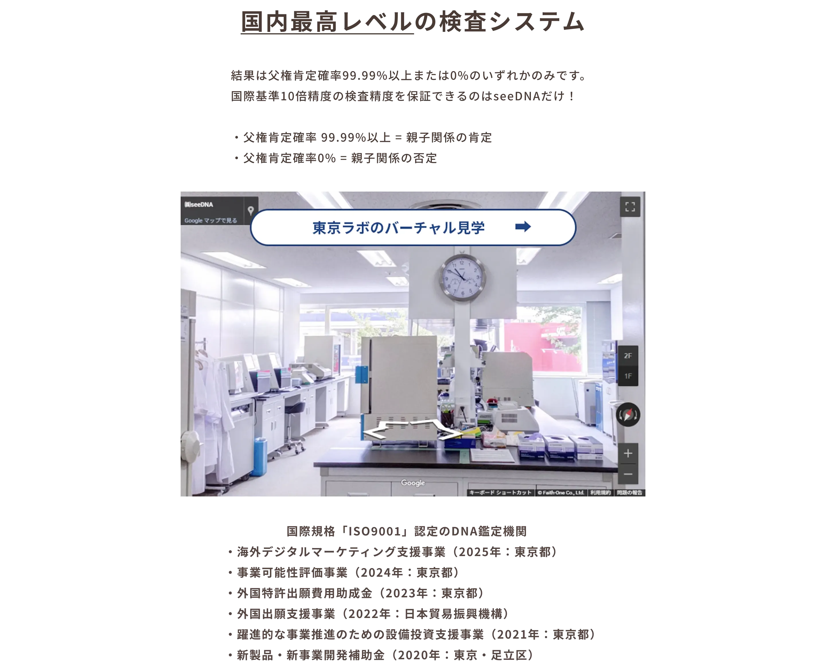 ※5:国内で唯一、 血縁関係を認めるために必要な父権肯定確率の最低保証精度を公開しているのはseeDNA遺伝医療研究所だけ! 最低保証精度は国際基準の約10倍!