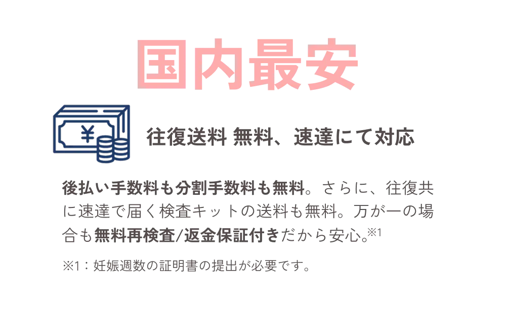・国内初の出生前DNA鑑定を開発してからミス判定「0」ですが、万が一検査結果が間違った場合は、検査費用を全額返金します。