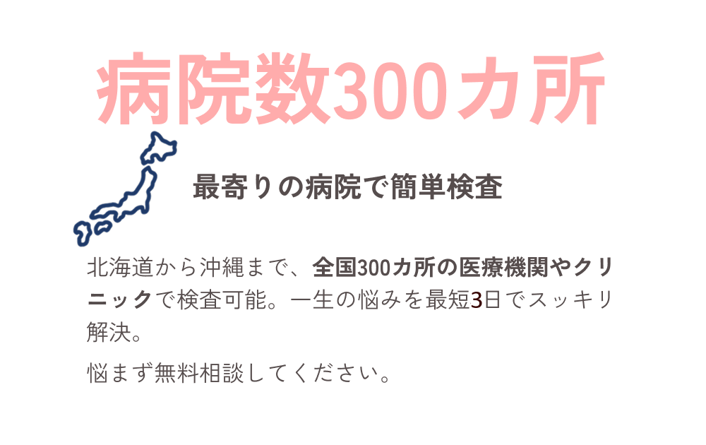全国300カ所以上ある病院で簡単に検査が受けられます。病院予約代行も行います。