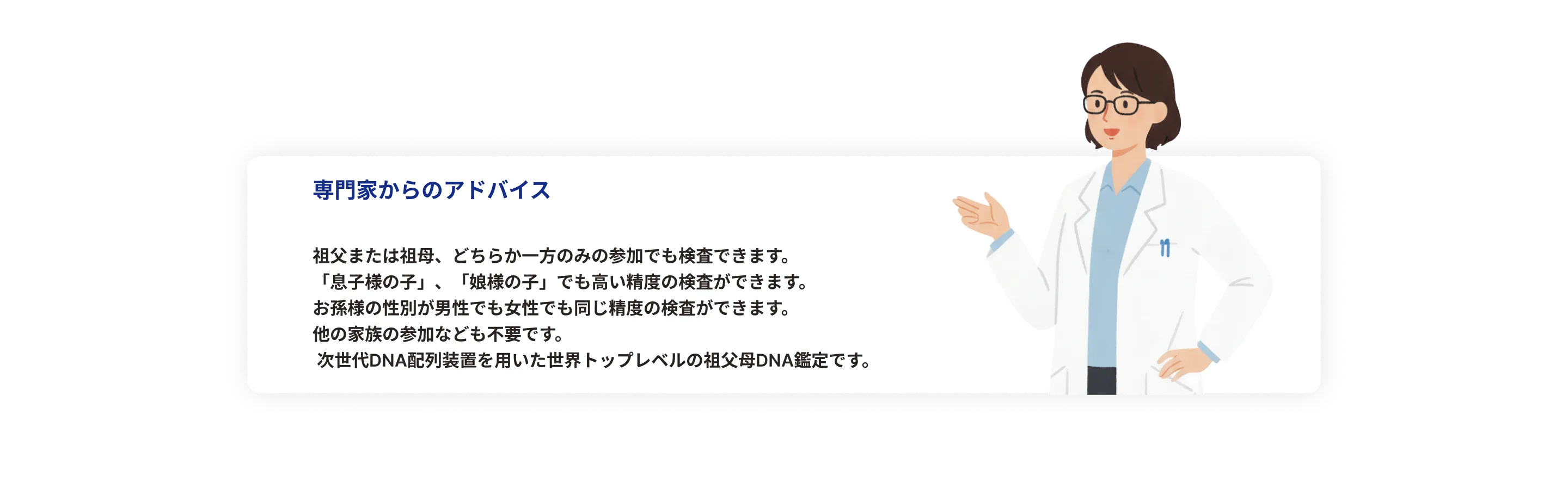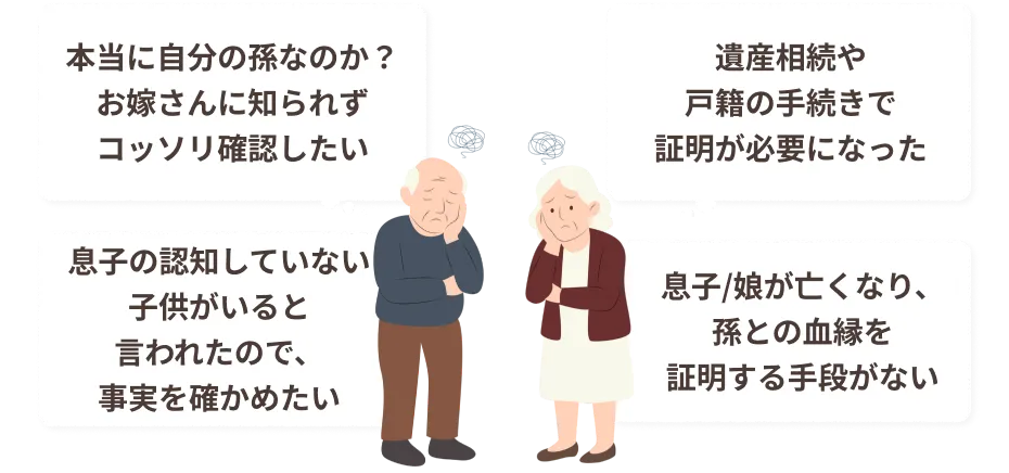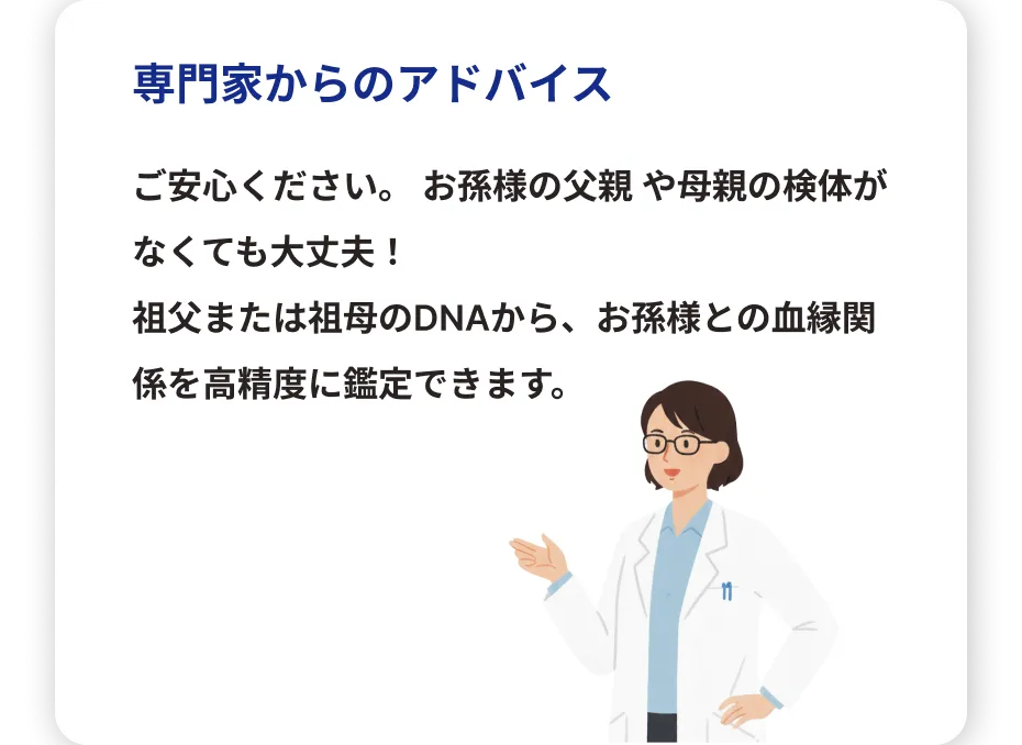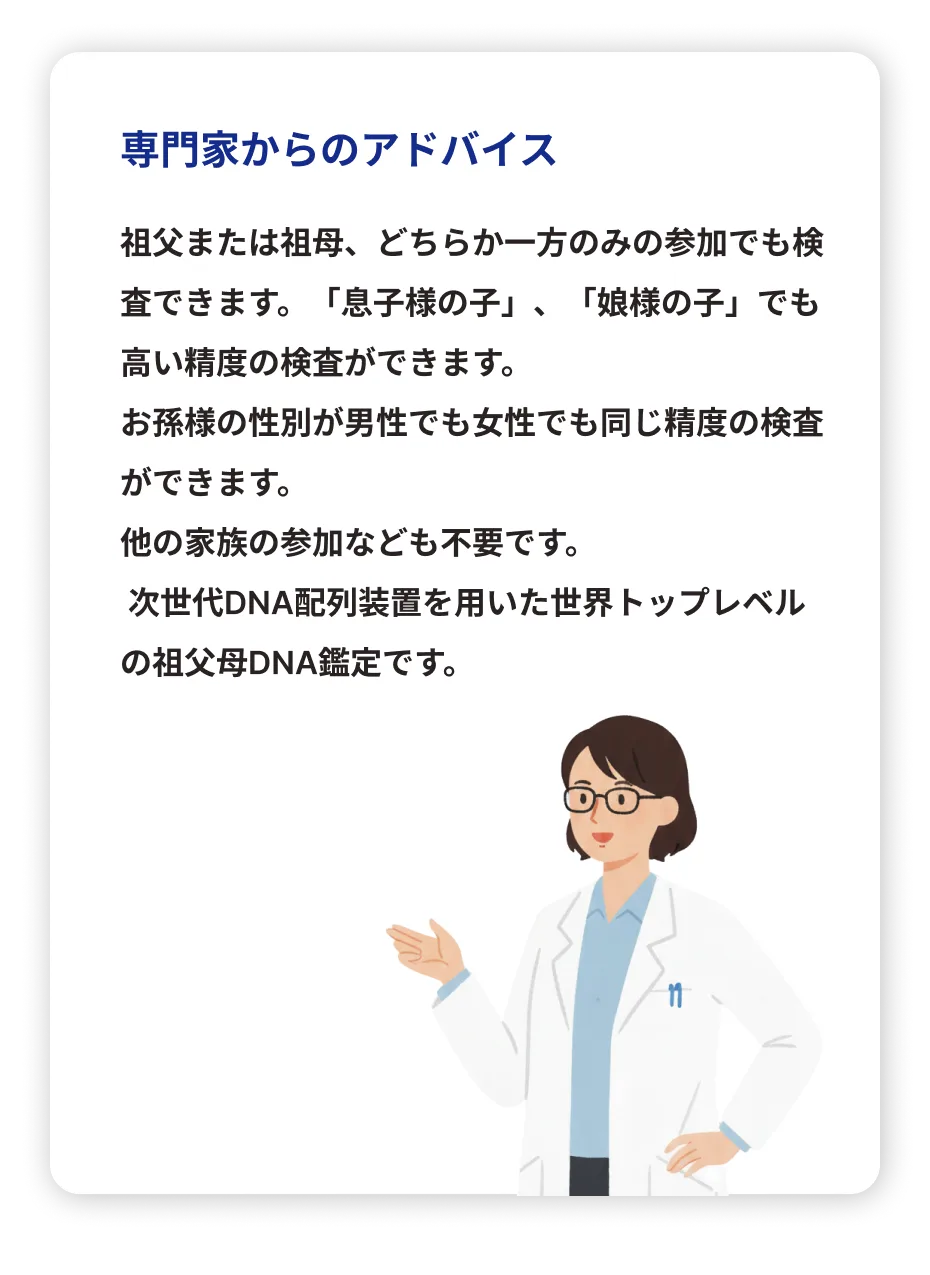祖父/祖母と孫が遺伝的な血縁関係にあるのかを調べられるDNA鑑定です。