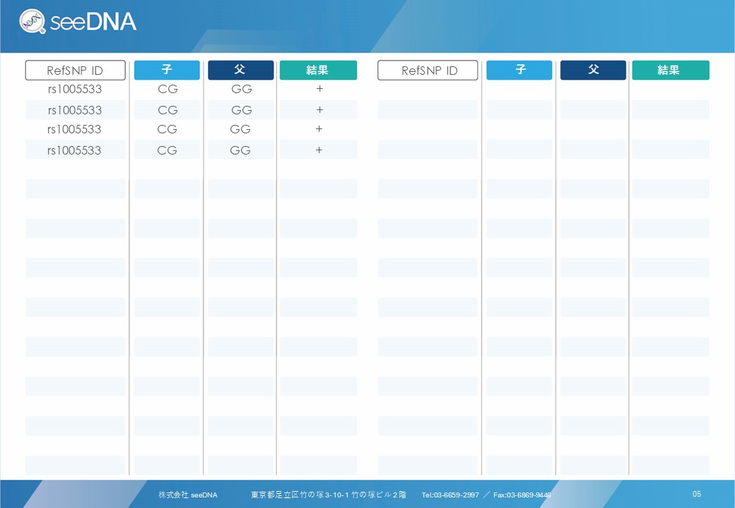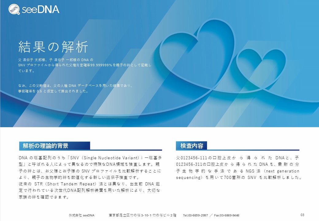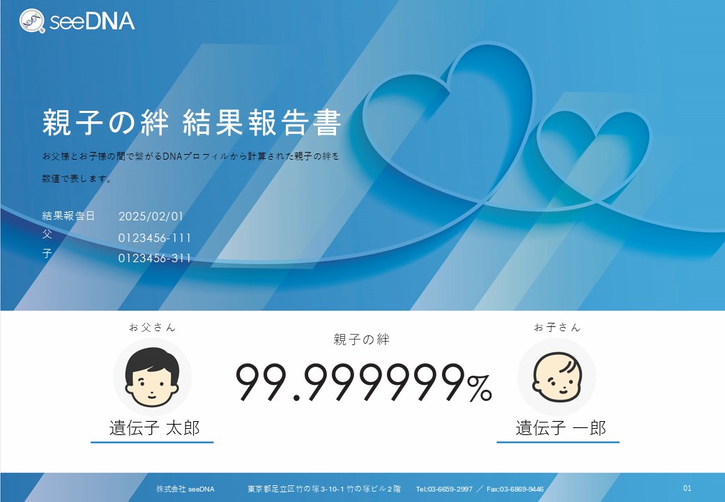 お子さんとのDNAの繋がりを数値で確認できるseeDNA遺伝医療研究所だけの新しい遺伝子検査です。