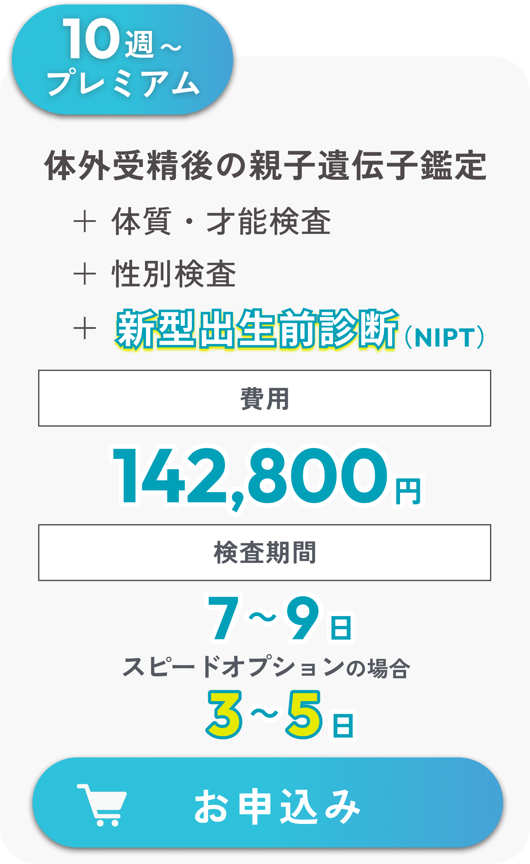 ・疾患リスク検査(新型出生前検査:NIPT)付きのプレミアムプラン検査は下記の①~③に全て該当する場合のみお申込みいただけます。