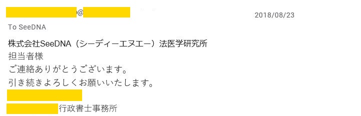 DNA型鑑定をして頂いたことで、とても心が楽になりました。この度はお世話になりました。